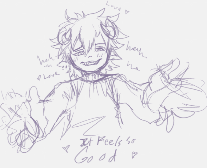 (Angry top left) This art starts after he's calmed down from a manic episode of his where he's coherent again After getting super murder bitey feeling. He picks The turtleneck for us to wear. I got to pick pants. Sin's upset about being treated like a dog who has to do tricks.
