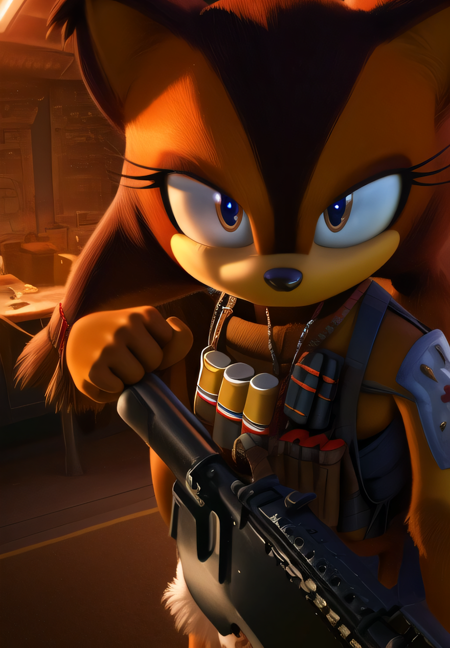 keyword prompt: Beautiful and detailed picture of Sticks the Badger, (best quality, insanely detailed illustration:1.2), masterpiece, child, kid, epic realistic, hyperdetailed, solo, furry, weapon, animal nose, gun, holding, looking at viewer, animal ears, shotgun shell, bullet, holding weapon, furry female, blue eyes, body fur, male focus, 1girl, indoors, holding gun, upper body, shotgun, 1boy, brown eyes, bandolier, gloves, artist name, armor, shoulder armor, furry male, standing, vest, closed mouth, ammunition