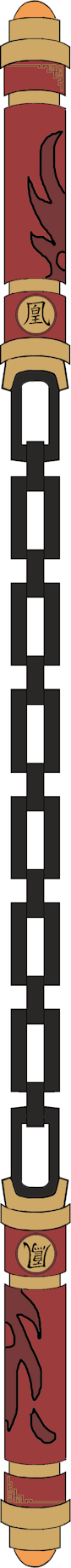 Weapon :. His weapon is a mythical and mystical nunchaku called the Harbinger/Omen of Blazes (Huǒyàn Yùzhào 火焰預兆) or locally known as "Kwensu-ca". This nunchaku is a gift from Fenghuang-ti, the phoenix deity, to the first person ever to bind himself to Fenghuang: the First Chosen, known as Chiû Khûng-lìn. A folk hero and founder of the August Rooster/Vermilion Bird School and in particular of the Twin Phoenix Boxing (雙鳳拳 / Shuāngfèngquan). This Nunchaku had the mystical ability to change shape to suit the wielder's fighting style. It could take the form of any blunt weapon, change its size and length, and also channel the fire power of the phoenix, dealing magical fire damage. However, the chosen one of Fenghuang can simply imbue their chi with the power of the Fenghuang to achieve the same result. The Nunchaku doesn't cost any chi to use.