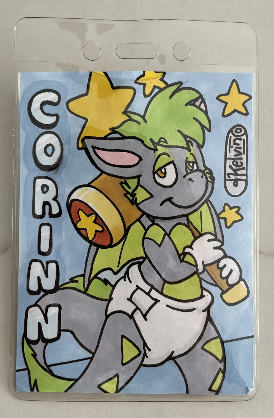 A badge I got from Kelvinthelion at megaplex this year. Also got his Babyfur poker 2 deck as well, it’s wild that I’m a marketable card now! I’m the Jack of clubs in it X3