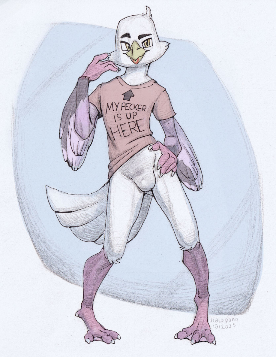 Being on a seagull vibe lately, I was tickled at the idea of having my chip-gobbling bird be, ahem, equipped like the real world counterpart, and thus able to go around pantless with nothing to cover up down there. Rocking the null look sure is appealing, even if I'm keeping it all neatly hidden away among the feathers of my derriere. Getting down to frisky business will certainly be quite different with no ding-dong ;>
