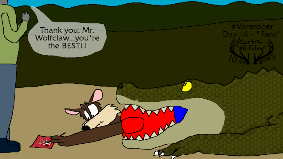Two individuals, running from a hungry lioness. One pulls a nasty trick and trips poor Austin.