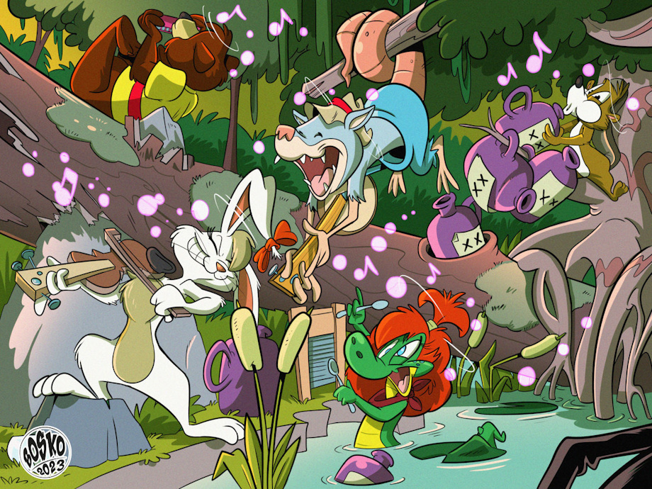 Tipsy moonshine party at the swamp for Banjo & the Kissyfur Gang crew, play that tipsy funky music! 😅🍺