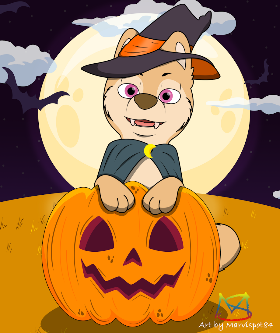 Nicky is ready for Halloween night, he didn't know which costume to wear, vampire or witch, so he said why not both?