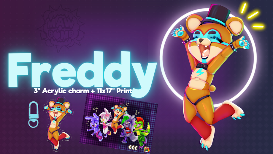 Last but not least in our Acrylic Charms is Freddy Fazbear himself! His charm will come with a BlueClasp, and you have the option to get him with the print!