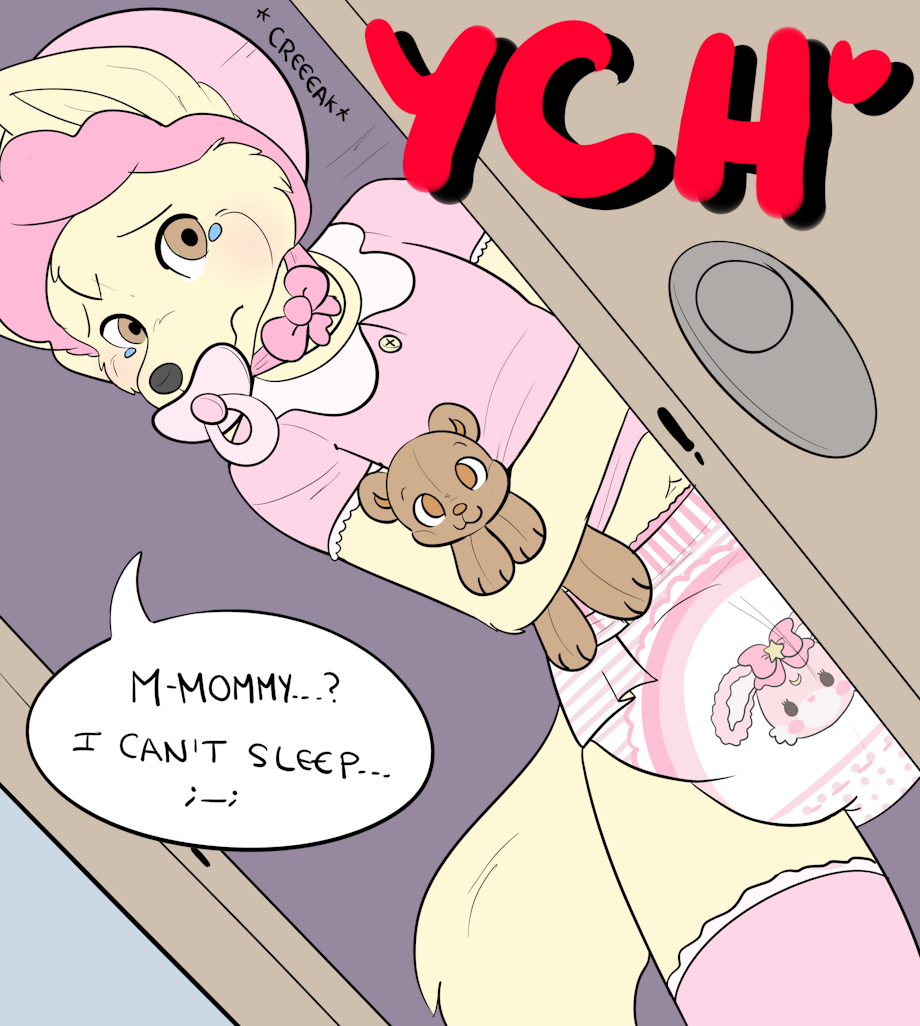 🎀 General Info → There are 6 slots available. → Payment should be made upfront via paypal. → Any gender and species are accepted -- humans too! ^^ → The clothing can be changed to be the same as https://www.furaffinity.net/view/53942639/ so it is like a continuation picture :3 → Baby bonnet can be removed → Teddy bear plushie can be changed to another one as long as the shape is similar ^^ → Some other changes can be made to the lineart; such as changing the diaper design, removing the tears, etc. feel free to ask~~