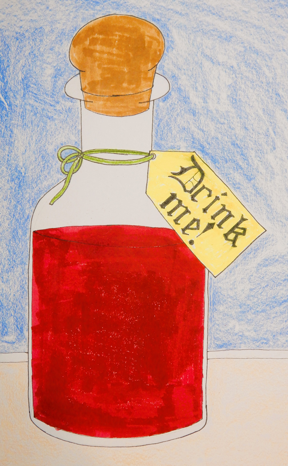 This was prompted by a tutorial deemed appropriate for Halloween http://www.deviantart.com/team/journal/Tutorial-Draw-a... The first thing I thought of was that bottle from Alice in Wonderland, the one labeled "Drink Me". I admit I've only seen a few scenes from that movie, but one I remember was Alice eating a cookie or some sweet labeled "Eat Me" and growing big, then drinking the potion and shrinking. Hope you like this.