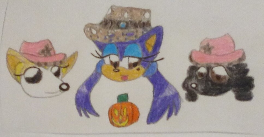 Yep, I as well as my dogs for going as Cowgirls this year. So here's Shannon, Jackie and Annie as Cowgirls for Halloween. I got lazy to draw the bodies.