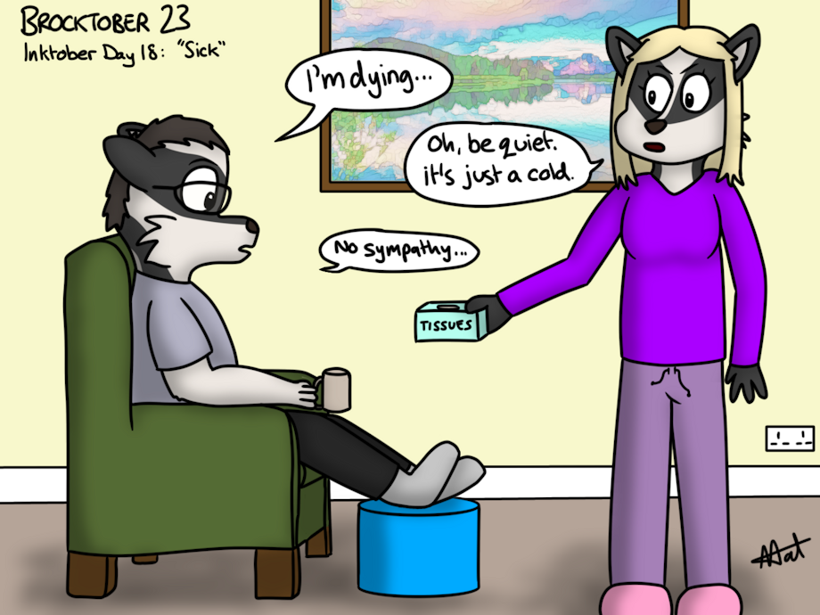 Well, the actual prompt was 'Sickfic' but not being fully sure what that was I just went for sick. I do have a cold right now, been suffering for a few days. Unfortunately (or fortunately, depending on your perspective on these things) I don't have a Laura to tell me to man up.