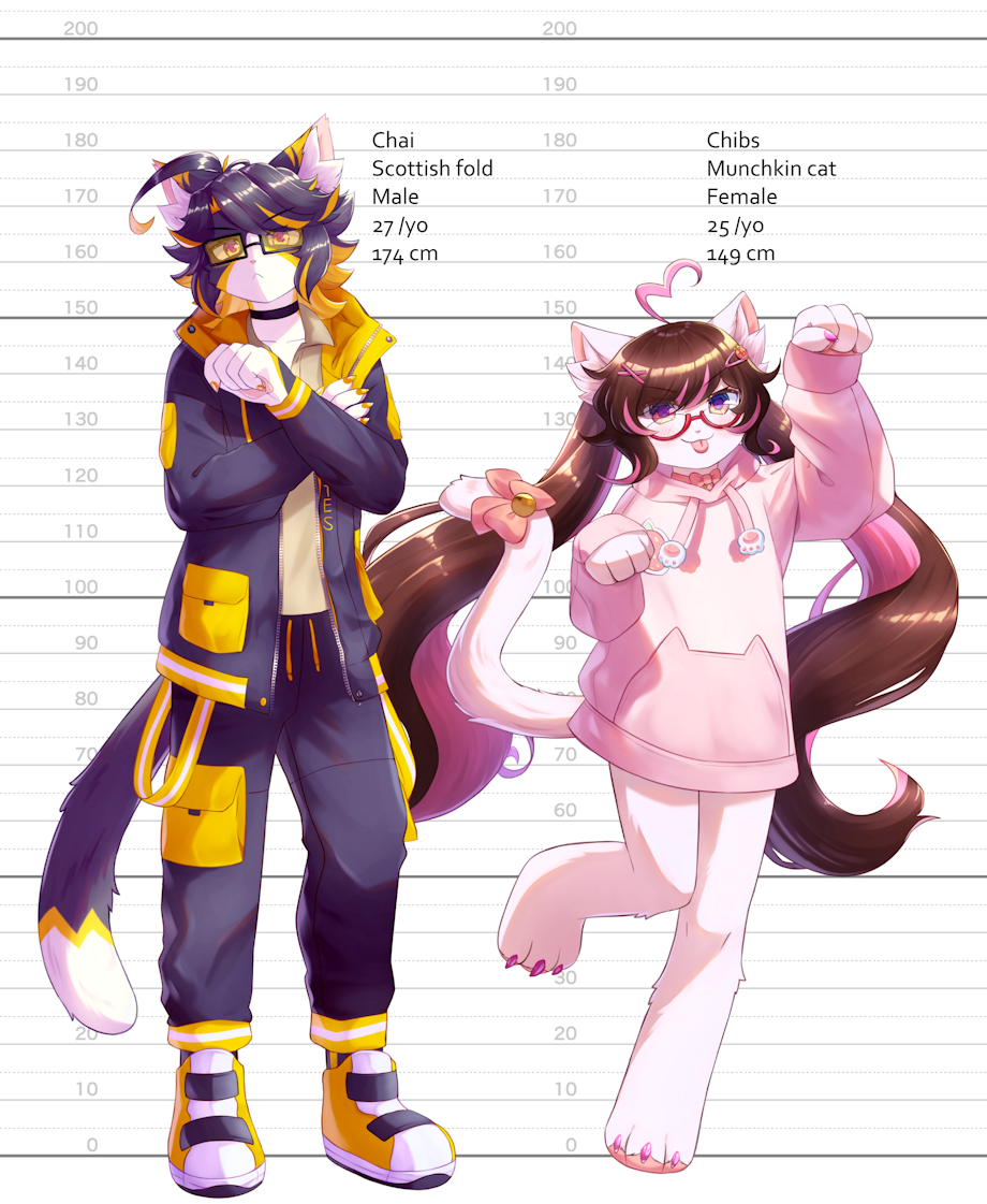 I haven't drawn much lately due to catching flu weeks ago and semi-burnout. Here's a quick height chart of my fursona and my boyfriend twink cat. Guess I can still draw.