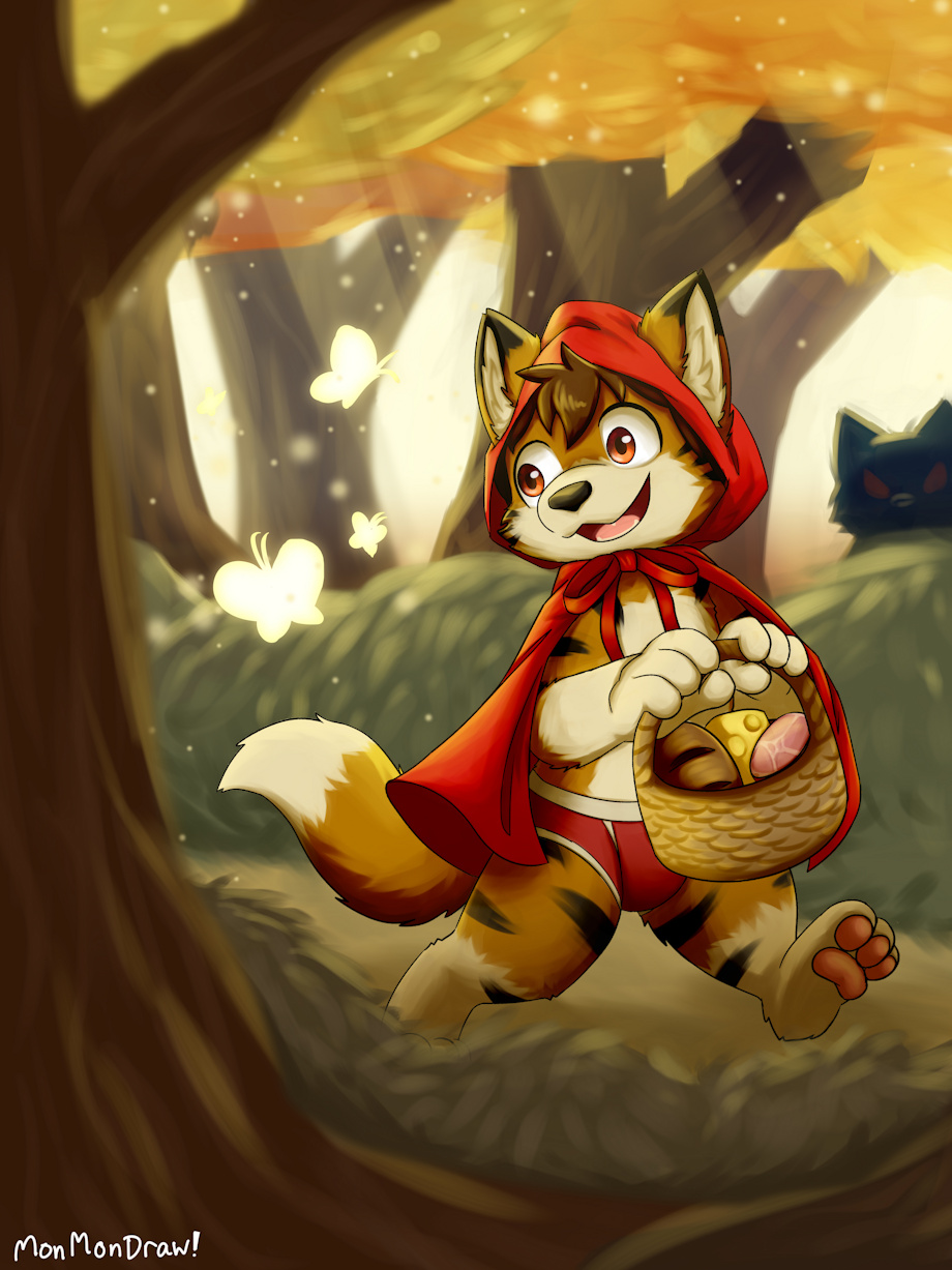 reminds me of a fanwork where 'red' was a little Wolfgirl.. who wore the deep hooded red cloak to hi