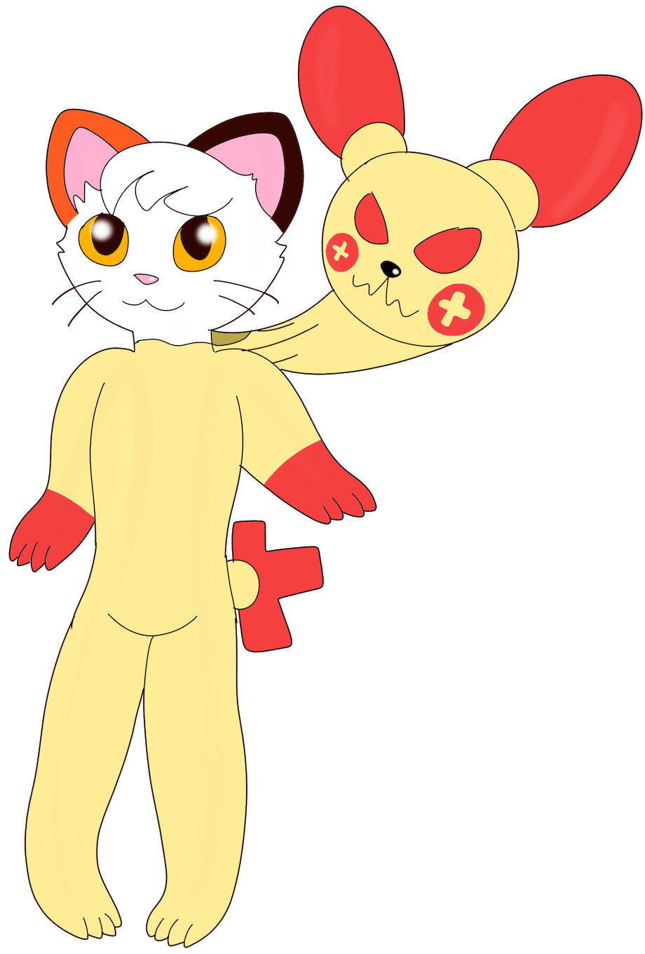 This Male Anthro Japanese Bobtail Cat got bonded by a Plusle Symbiote.