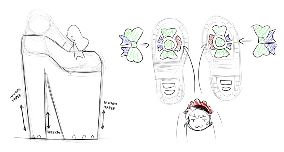 The Rem in her natural habitat, utilizing her camouflague to prey on unsuspecting buildings! I guess it really has been a while since you drew an explanation picture like this, hahah. I remember the older ones from waaaaaay back in the Livestream days and all. It's a clever design! Now, as for the treads and the foot thing, THAT is something you've never drawn direct attention to and I never realized it, but it's kind of obvious once you look closer honestly, especially with the toe thing.