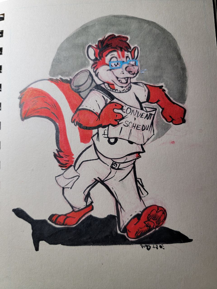 A nice gift I got from Dogz he did of EricSkunk running around at a furry con to se all of the friends he knows is going, make new friends, and of course get commissions! We got addictions to feed here folks! Haha.