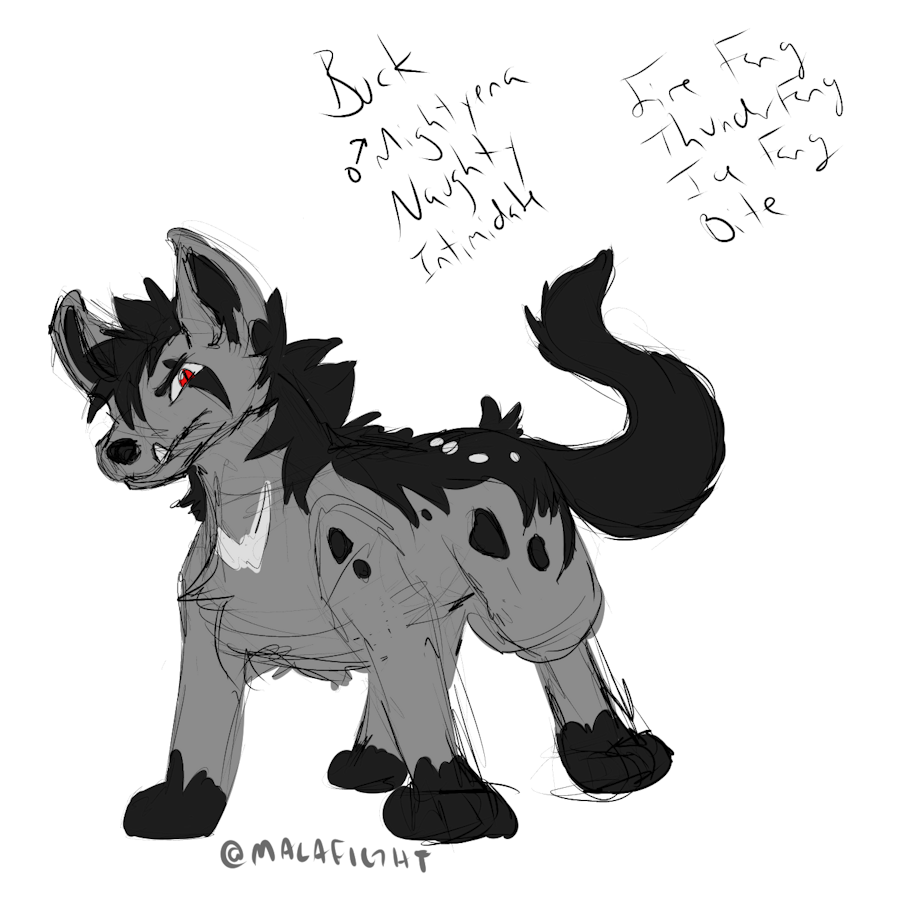 His pokemon: Cleo, Espeon: a bit flirty, enjoys teasing Buck in particular and has a biting wit when she wants to Buck, Mightyena: he’s big dumb and aggro but has no fear and is actually a big softie at heart Mango, Tyranitar: the laziest motherfucker you’ve ever seen. gives no fucks. Rin, Raichu: she’s adorable and peppy and friendly, but given to excitement-shocking new people without realizing it