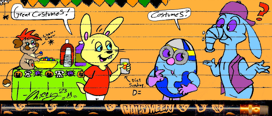 Seems Mustard has met with some friends dressed as Posey and Narker ...at least, we THINK these two are just normal talking funny-animals in costume (they are, aren't they?).