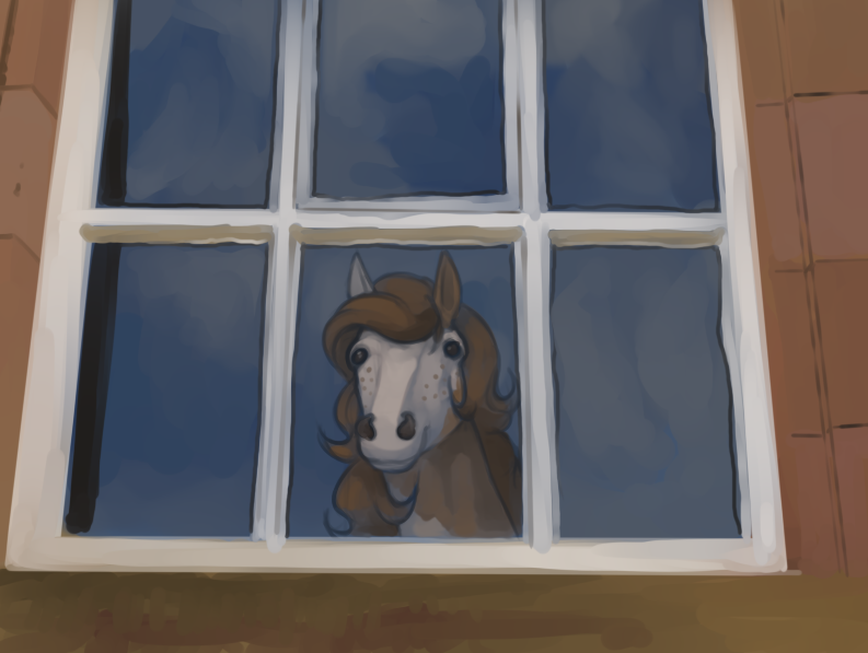 Niiice, looks like she is gazing at her reflection. Maybe she's looking in to see if her friend is there. "Want to go for a ride?" Me, my answer would emphatically be, yes!