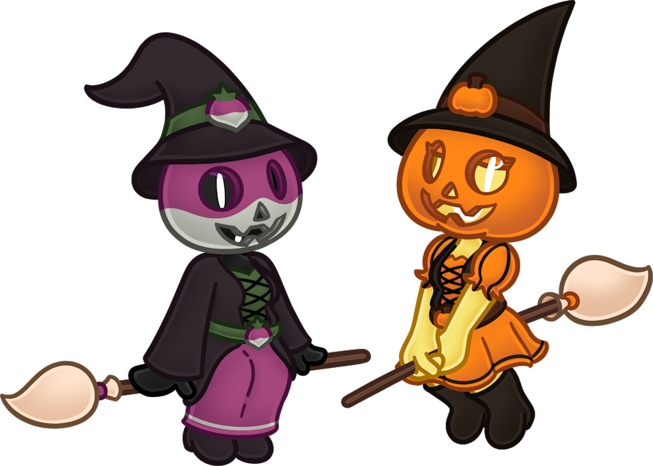 More halloween costumes, this time with Eclipse and Helia wearing matching Jack-O-Lantern witch costumes!