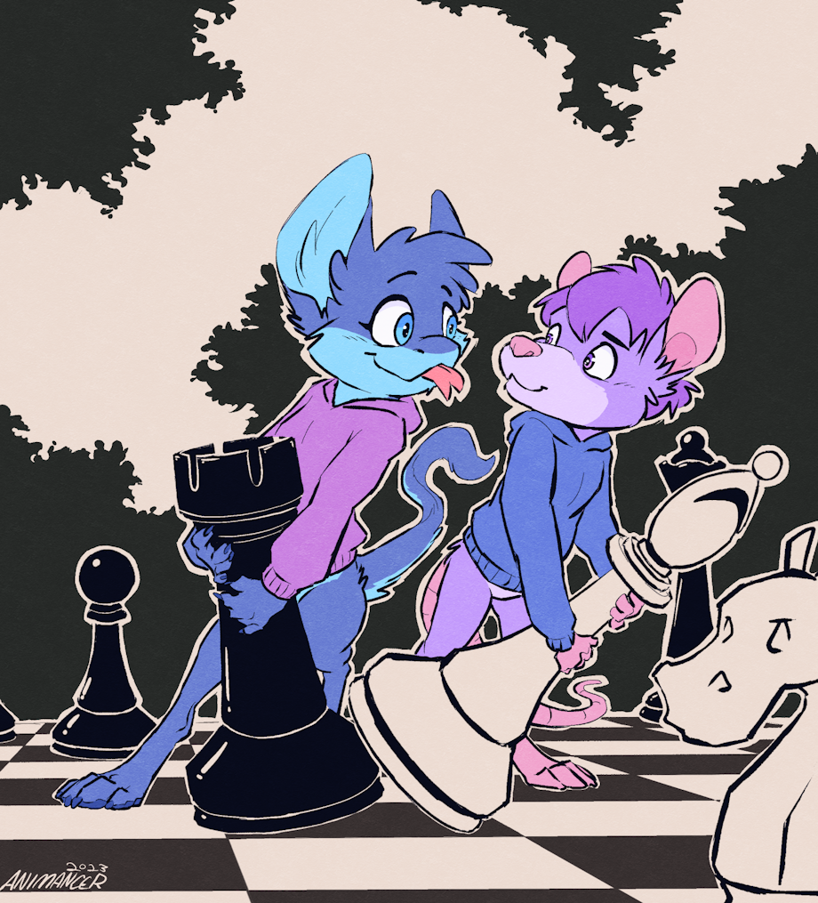 "Chessmate!" Harzy and Snoozel are two chessy cutes.