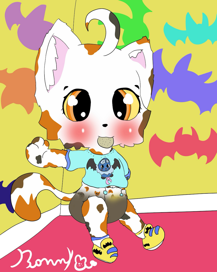 say hi too sasha the neko kitty she's a friendly kitten girl she's 4 year old sex F most of time you gonna see her in diaper with kitty design on and sometimes when she's in her pretty cure magic girl outfit u can see her wearing a cute childish undie with kitten on but she prefers always be padded she never wanted too be potty trained she prefers the softness of a diaper and she also like the idea of no need of a potty break wen she watched cartoon and play video games