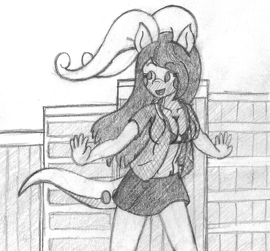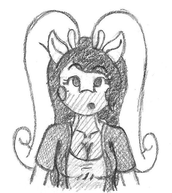 I tried an experiment to see if I could make her design work after bringing the smaller antennae back. Turns out, just as I feared, this became way too cluttered up there, so she'll remain as I've been drawing her lately.