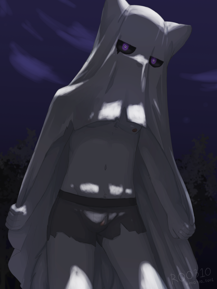 H-hello spooky boy. >///w///> Wanna let me join under that blanket? =///////=