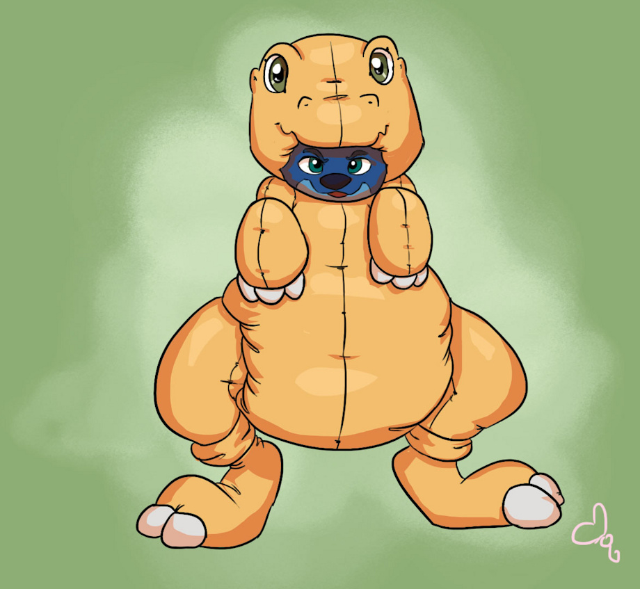 this was a ych i got to play more into the fact that my fa username was babyagumon. this was due to the fact that at the time i made the account i was still hovering around having a digisona, an agumon. but as time passed i settled on an otter and took up the name joey. buuuuuuuuuut since I couldn't change my username on fa it still remains as babyaugumon. So this just felt appropriate to get as a result.