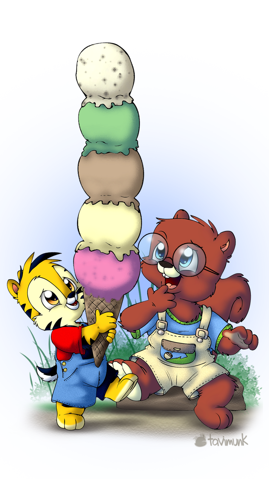 Tavi told his bro to sit and wait there on that rock as scampers off.