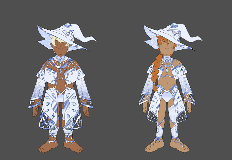 Now, in the current era, the Guild is thriving. Whenever a couple wants to become parents, a mage is sent from the guild to test the couple to see which is more capable of bearing him. These men are impossible to mistake, with their bright green eyes and periwinkle outfits lined in metallic edges and sparkling with gems that leave their bellies bare.