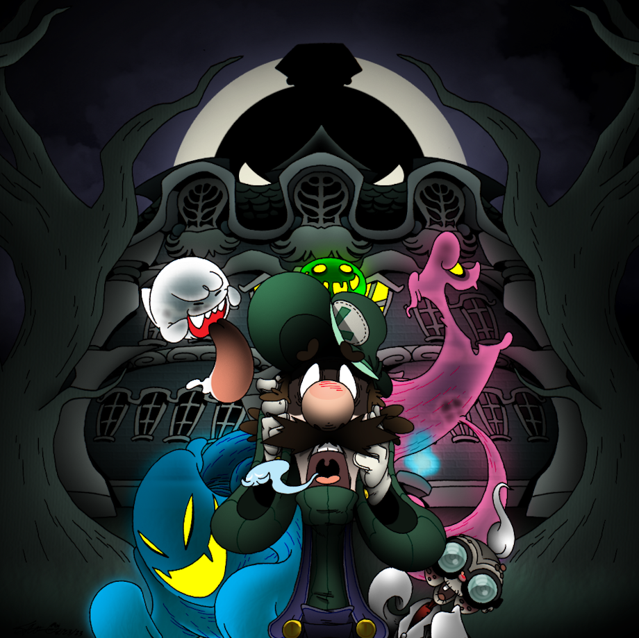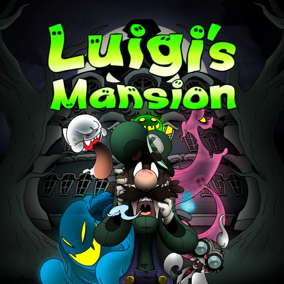 Luigi has a bit of history with my Halloween Countdowns. Back in 2013 he was planned to be second place, but was kicked off of that pedestal by the Ghostbusters. I mean, I can't very well have the pretender show up the originals, now can I? Still, the eternal second banana getting ranked no.3 never sat right with me. Last year, when I revisited all of my previous countdowns, I almost put him in again but he just didn't make the cut once more -- all this mixed in with my undying love of the original Luigi's Mansion, I just felt like I needed to give the ole' Player 2 his time in the lime light much like they did all those years ago on the GameCube. So, imagine my surprise when I was given that exact opportunity! Sure, I've draw plenty of Luigi to the point I've developed my own style for him and Mario, but to actually replicate the iconic covert art of Luigi's Mansion in said style? It was a project I was both happy and eager to take on!