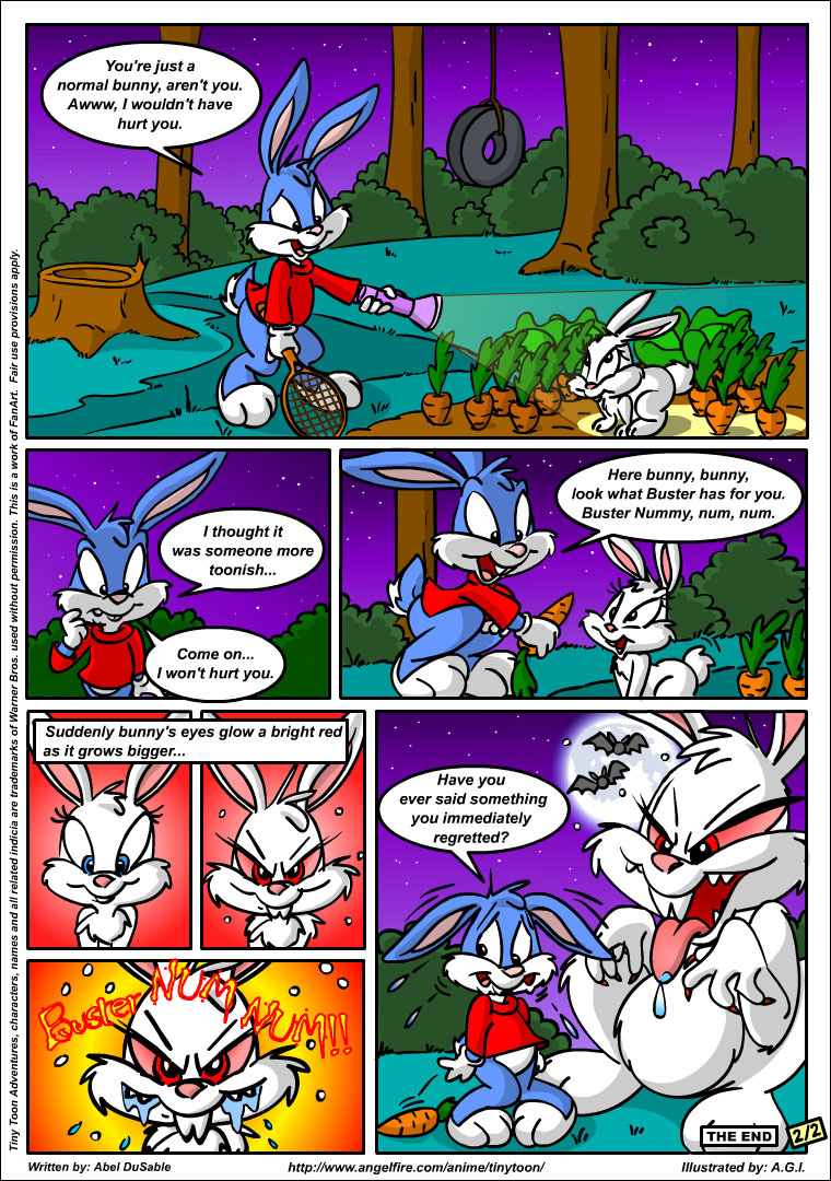 it's just the opening scene of the story, drawn it as standalone comics, so the end open to interpretation. In the story Buster is turned in to were-rabbit/hare-wolf