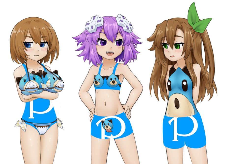 Blanc, I know you're desperate to get bigger ones, but don't be THAT desperate! (I like the patterning of her swimsuit though, basing it on her normal appearance and having the themed ties is good!) The transparent effect on the dogoos to show her true FLAT is shockingly effective as a visual.