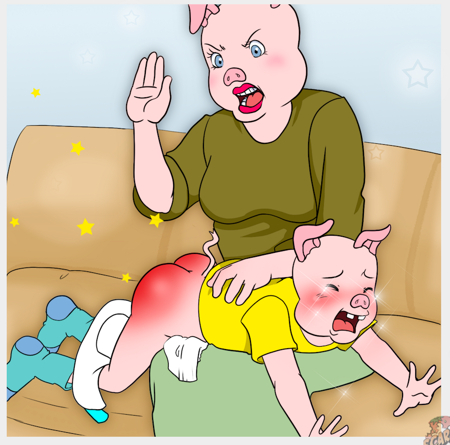 She sent the freshly diapered boy off to the living room to play while she tidied up the house for a little bit. She also warned Gutner that they were still going to have a long chat about his behavior at the Smith's house. The nervous piglet nodded and anxiously went to the living room and played with some blocks while his Aunt cleaned up the house.
