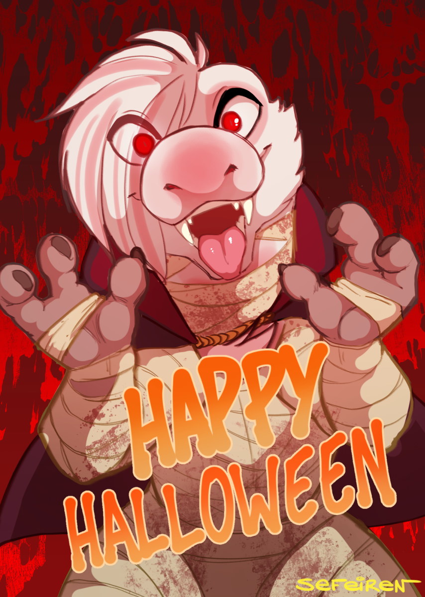 Have a slightly late Halloween-themed picture of Gwen! She couldn't decide if she wanted to be a vampire or a mummy, so she just did both!