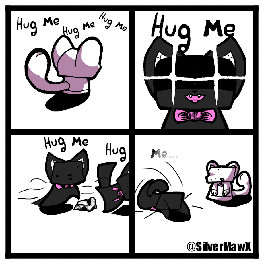 The character of SilverMaw tries to give a hug to EllaMaw, but something happens that prevents it. EllaMaw is left with a look of 'what the heck' :o.