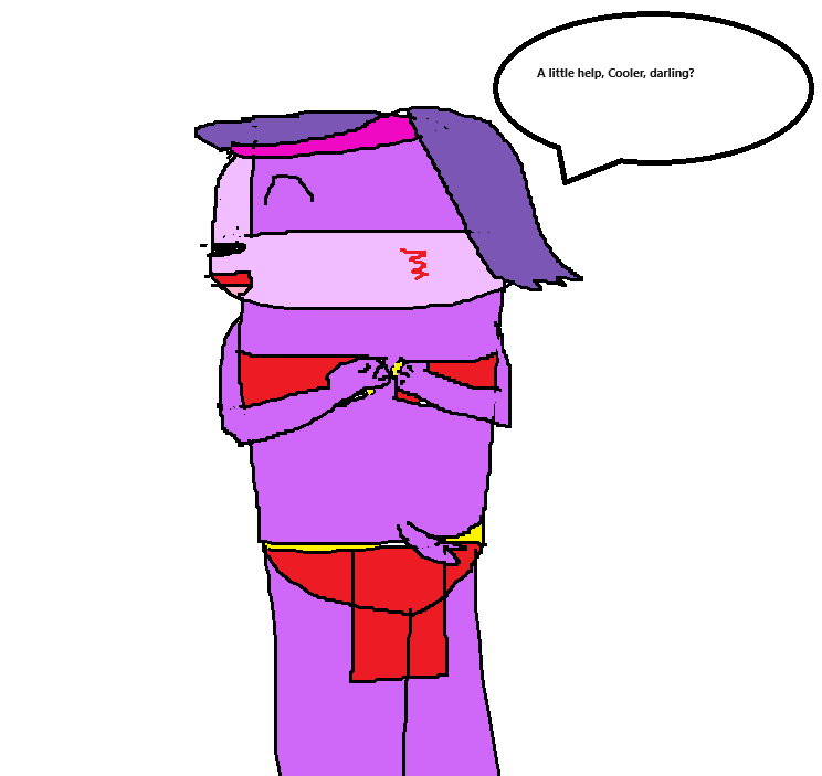 Zoe needs Cooler's help to get her bellydancer top connected so she won't have to dance topless.