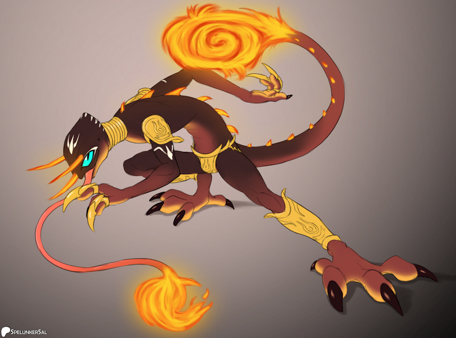 Meet Reysh, a chameleon from the Fire Nation in the Aether universe! Made this original character design from scratch. Cloudfox requested me to draw this for my benefit, knowing that I've always wanted to make a chameleon OC. Thanks, man :D
