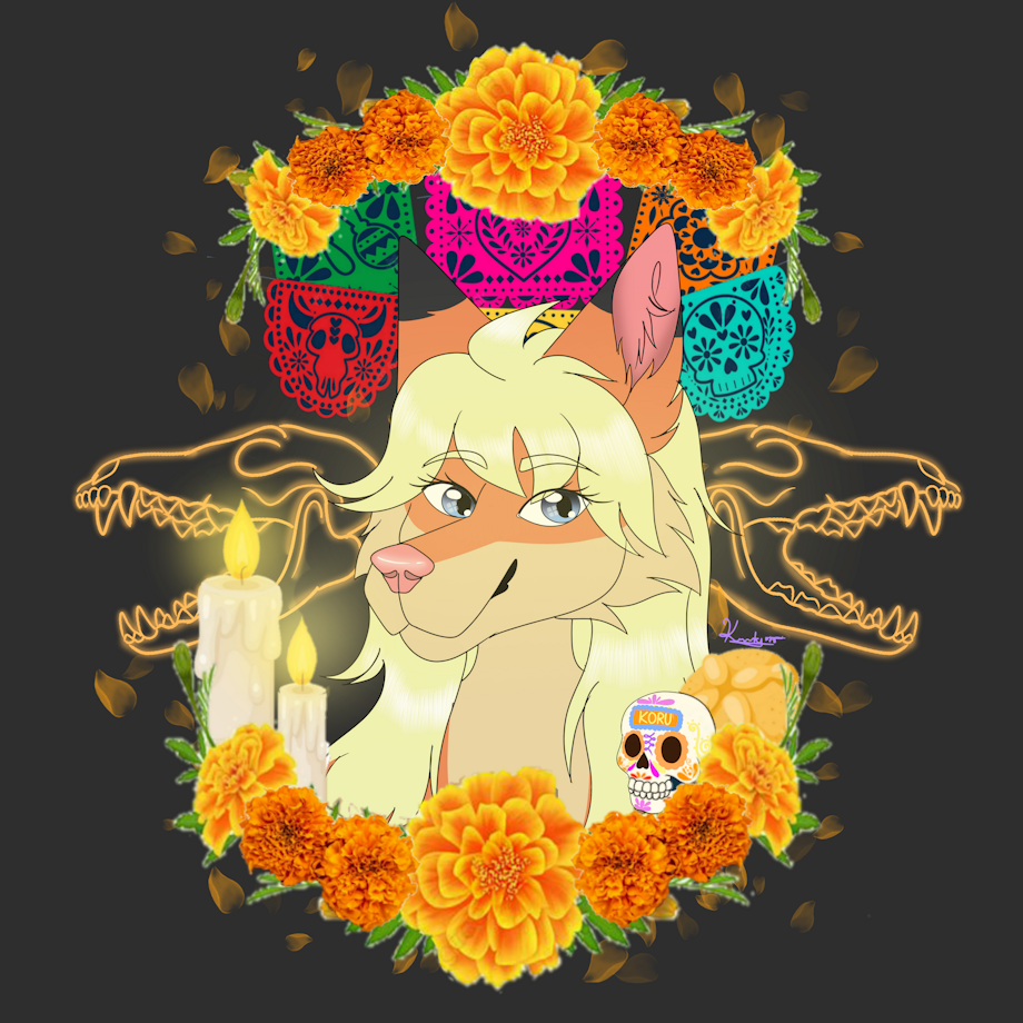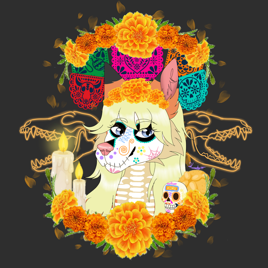 A simple and beautiful icon of Koru-Chan in its fox version and on the occasion of the day of the dead