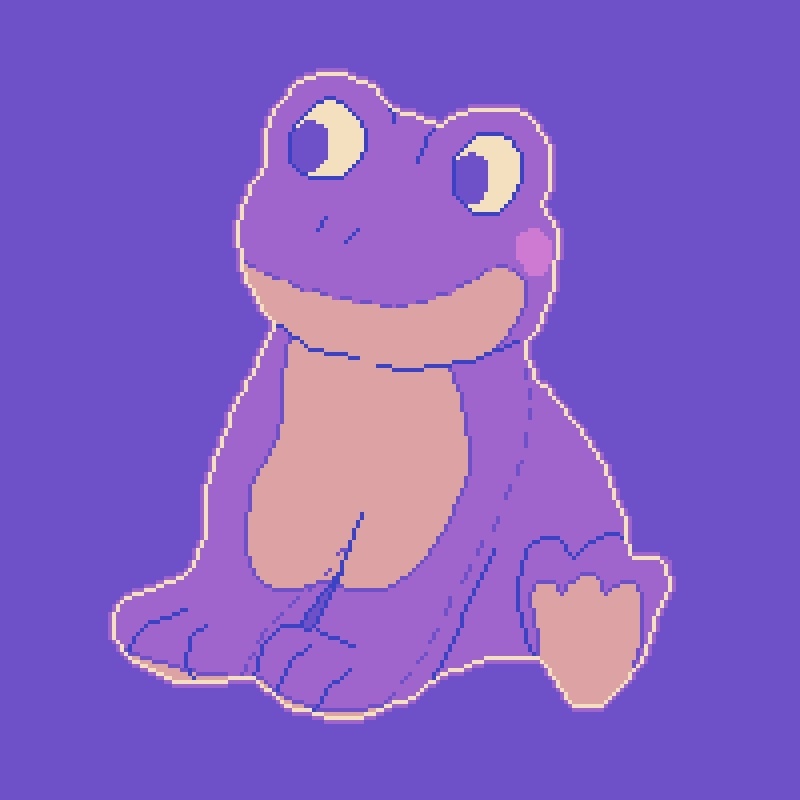 [ID: A pixel art depiction of a stuffed frog, done in shade of purple and pink/peach. /ID]