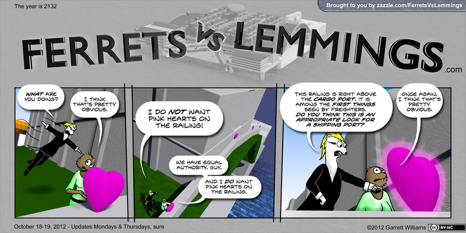 You wouldn't believe how many hours it took just to decide what Guy was going to put on the fence to annoy Death. There were various things he could put there, but none of them would annoy her enough. Might as well go with the stereotype that bugs lemmings the most.