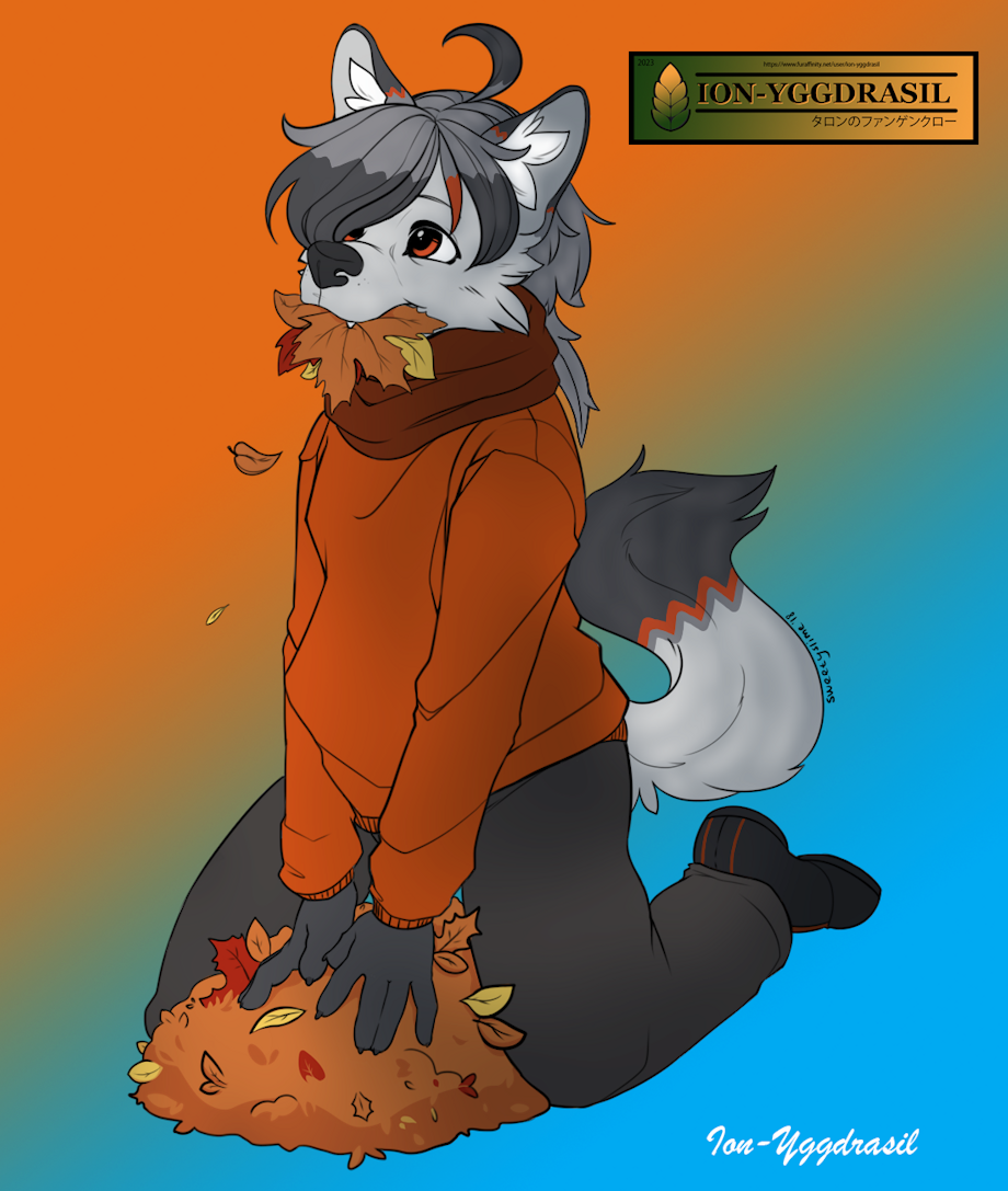 Flint enjoying the autumn sweater weather, having a fun time playing and munching on some autumn leaves