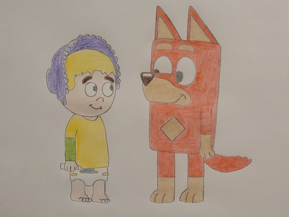 This is based on the bluey episode, "Mums and Dads". This is the story when Edward Hugh becomes a new student in Bluey's school. He was very shy and felt left out because he was the only human child there. Rusty noticed Edward's shyness and tries to play mums and dads with Edward. Bluey played as the mom and Rusty played as the dad while Edward was the baby. Mackenzie kind of played along too. Rusty was having fun with Edward. Rusty fed him, changed his nappy, and he sung him a lullaby. Edward wasn't scared of Bluey's friends anymore, even though they're bigger than him. Rusty was relieved that he wasn't the baby this time, he didn't want to go through what Bluey done to him the last time in the episode mums and dads. This is a gift for Bluffingo.