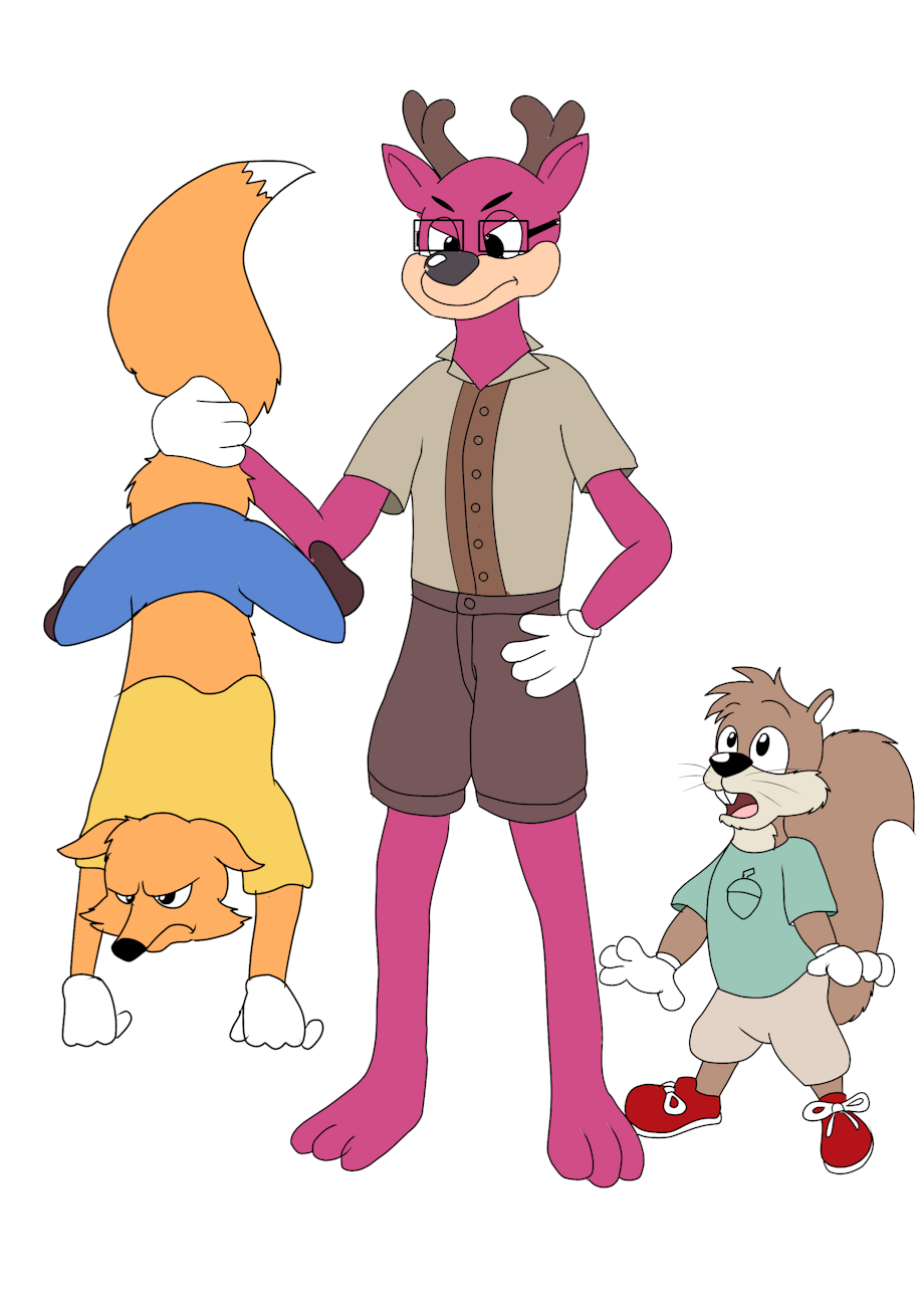 Well well well! Looks like Frederick Fox was sneaking up behind Chayton, getting ready to do some mean things to the Squirrel… But before Fredrick can get close enough, he feels a sharp tug on his tail! Next thing he knows the world is turning upside down, and a not too happy deer is holding his tail. Eric(deer) doesn’t take kindly to people out to harm his friends. And being as big and tall as that deer is I don’t think Frederick is going to try that stunt again for a long time.
