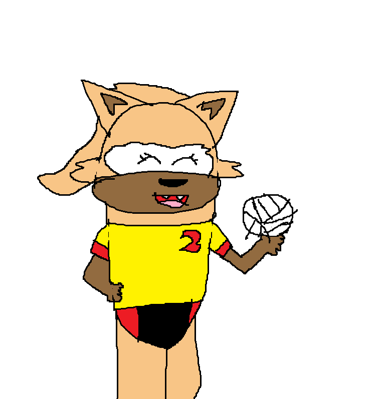 Whisper the Wolf dressed in a Japanese school volleyball uniform (for indoor volleyball play).