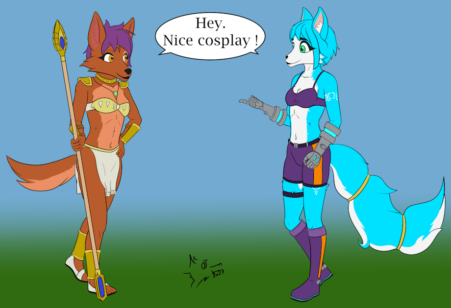 Little drawing staring the famous blue vixen Kay, and the space explorator wolf Kincaid ^^