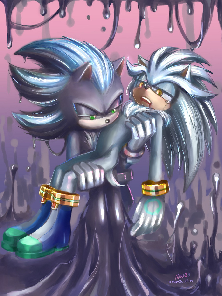 Want to ask: why Silver's mouth gauges blood? And Mephiles' colour is actually not blue, but grayish muted turquoise 😅