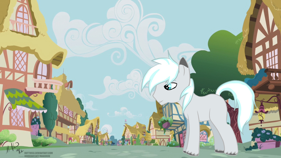 I love those clouds o.o And all the buildings ^^ Just put a red paw print as a cutie mark.. Booty slapping horse :O