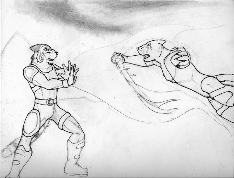 Looks like someone's a bit pissed about the soul sucking thing. Tiger had just enough time to throw up a barrier...which the panther seems to be slicing right through. Someone's gonna get a face full of claw..