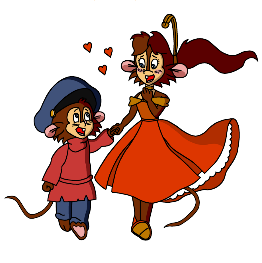 A request from a DevART user, who wanted a picture of Fievel wearing his old Russian cap. Honestly, I like the Russian cap better than the cowboy hat, though the cowboy hat is a bit easier to draw. Here, Fievel and Tanya explore their new romantic relationship by taking a walk together. It's a little windy. :)