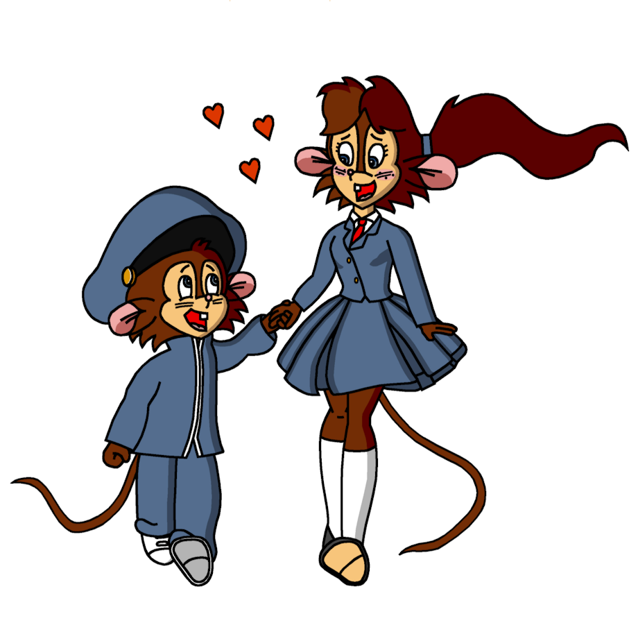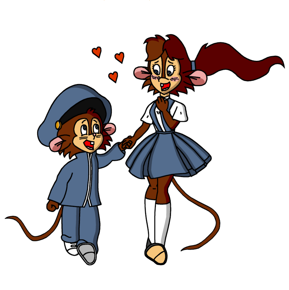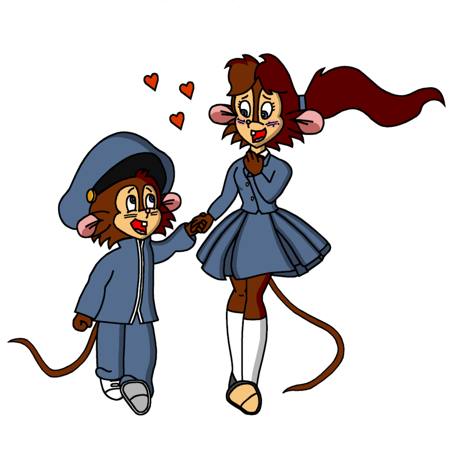 A request from a DevART user, who wanted a picture of Fievel wearing his old Russian cap. Honestly, I like the Russian cap better than the cowboy hat, though the cowboy hat is a bit easier to draw. Here, Fievel and Tanya explore their new romantic relationship by taking a walk together. It's a little windy. :)